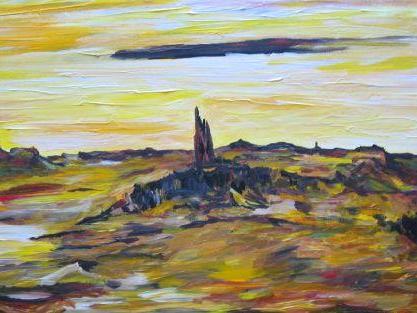 | | I Sit Here, in the Coolness of Shade, Scouting a Path through this Wasteland, that Once was Green Fertile Pastures Doted with...I Sit Here, in the Coolness of Shade, scouting a Path through this Wasteland, that Once was Green Fertile Pastures Doted with Cattle who Roamed Unimpeded Beyond the Horizons Edge. © 2008 By Duane Kirby Jensen, 12 x 24 x 1 1/2 Acrylic on DeepEdge Canvas