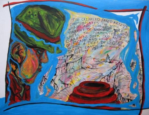 | | See Full Title In Description$600 The Crinkled Eared Artist Contemplates the Well of Words and Symbolism While a Torrent of Rain Engulfs Him, Until the Tormented Blue Currents Seek Out an Avenue of Escape and He is Left with a Deep Desire for Desert Lands and Honeybees... © 2010 by Duane Kirby Jensen, 15 x 20, Mixed Media on Watercolor Paper Be the first to post a comment.