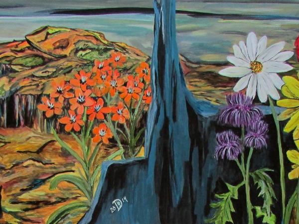 | | Out of sight, the growing sound of buzzing, makes its way towards a new patch of color, within a land swept free of language. © $800