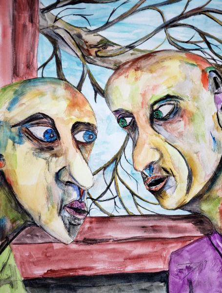 | | "He said what...?" Each leaned in as the gossip became juicier. $300 "He said what...?" Each leaned in as the gossip became juicier. © 2019 By Duane Kirby Jensen, 9 x 12 watercolor, ink, and graphite on watercolor paper Be the first to post a comment.