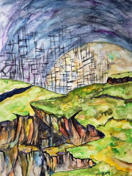 | | The echos of human voices have faded, but the crumbled city remains, a vestige of what was. $300 The echos of human voices have faded, but the crumbled city remains, a vestige of what was. © 2019 By Duane Kirby Jensen, 9 x 12 watercolor, ink, and graphite on watercolor paper Be the first to post a comment.