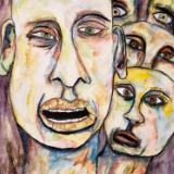 To silence the voices echoing in his head he contemplates his un-becoming. |