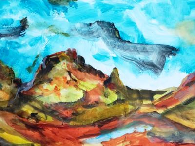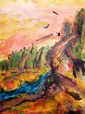 | | Click an image to enlarge  This gallery contains all works created during 2020. **Please note: All paintings are sold unframed. The artist retains reproduction rights on all paintings/sketches/images created purchased and purchased.  Even monks find this beautiful land to isolated. $300