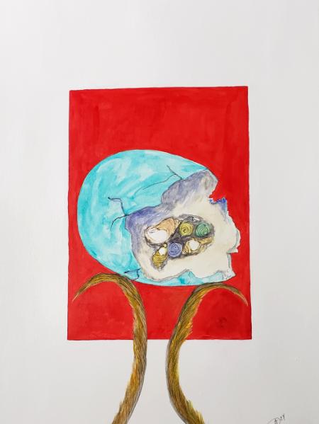 © 2024 By Duane Kirby Jensen 12 x 18 Watercolor, pen and acrylic on watercolor paper.