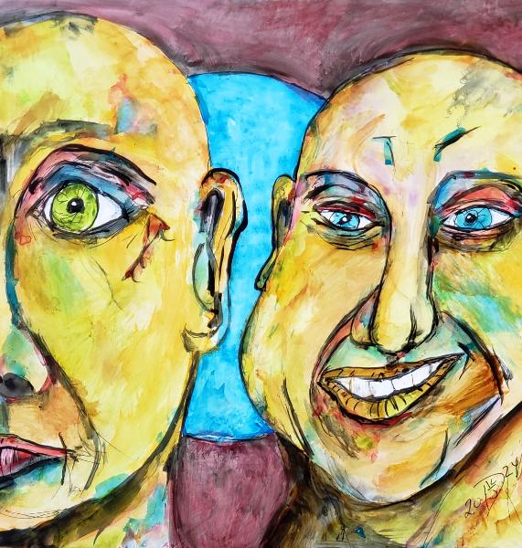 | | When one friend always sees life's little amusements.© 2024, By Duane Kirby Jensen 7 x 7, ink and pen on Yupo Medium$200 When one friend always sees life's little amusements.