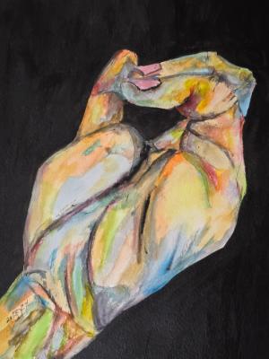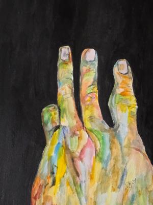 Reading my future with the crinkled lines in my hand. © 2024, By Duane Kirby Jensen 9 x 11.75 watercolor, acrylic, and pen on w