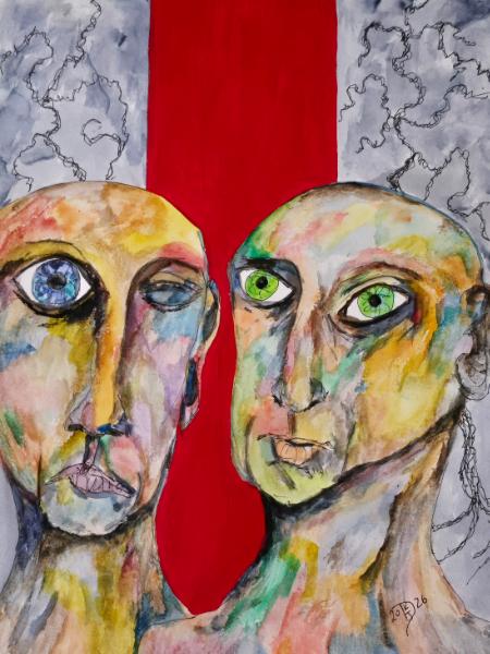 9 x 12 watercolor, acrylic and pen on watercolor paper